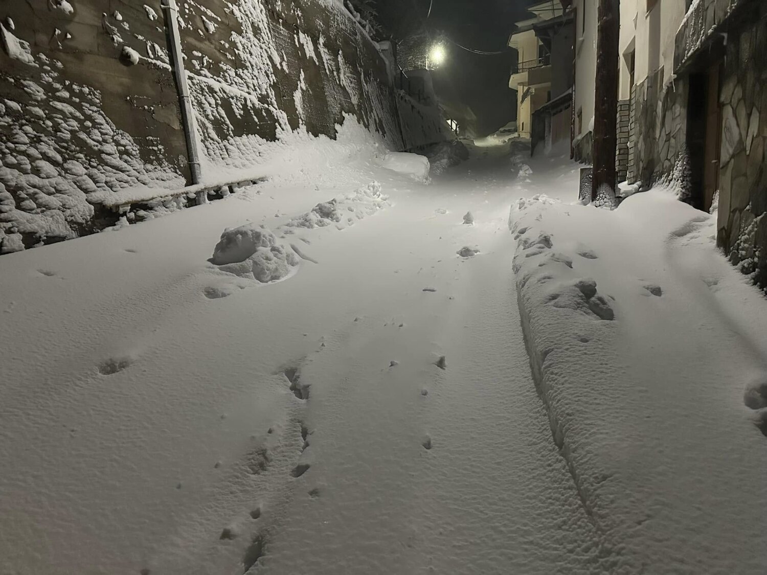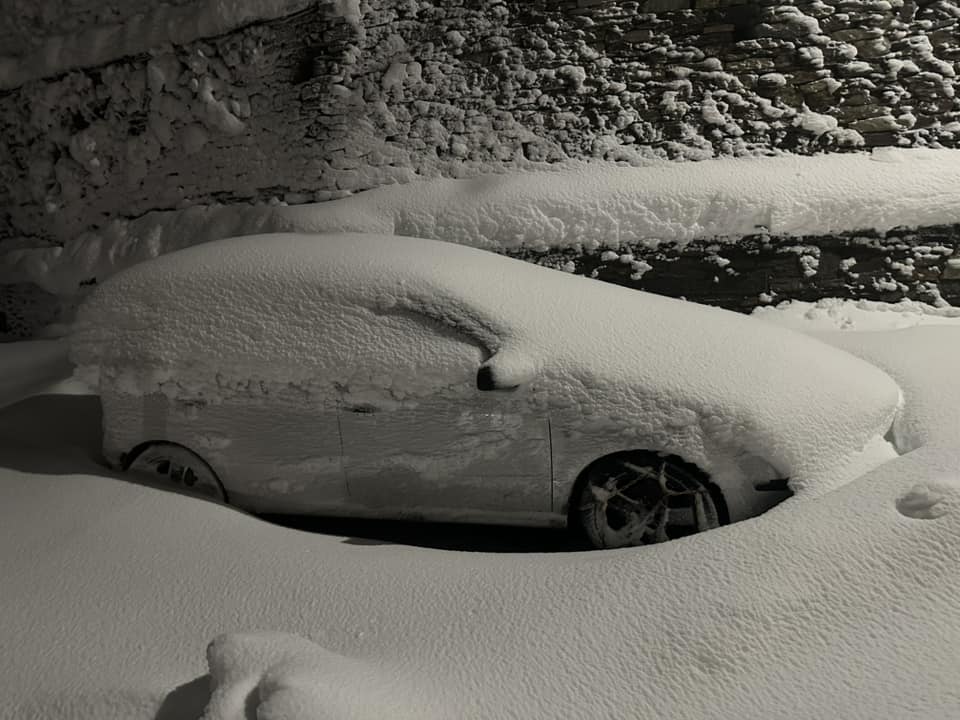 Χαρακτηριστικές είναι οι εικόνες που έρχονται από το Λιβάδι Ελασσόνας, το οποίο παραμένει «βουτηγμένο» στο χιόνι.